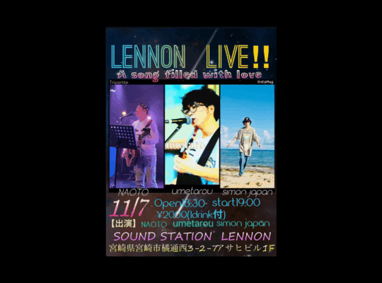 11月7日 (金) LENNONにてリアルライブ✨️ 是非、お越しください✨ OPEN 18:30 START …