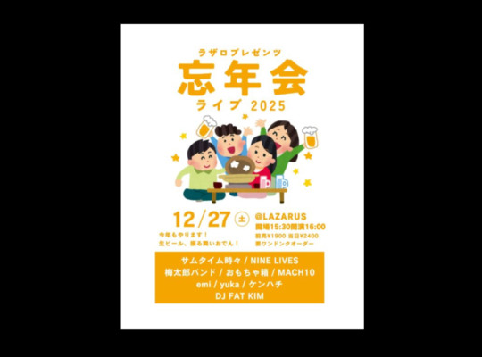 忘年会ライブ✨️@LAZARUS 2025/12/27fri 15:30 OPEN 16:00 START 出 …